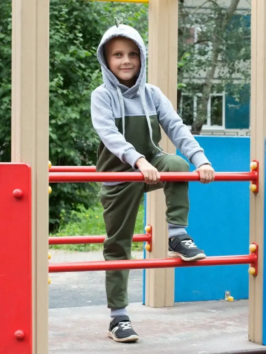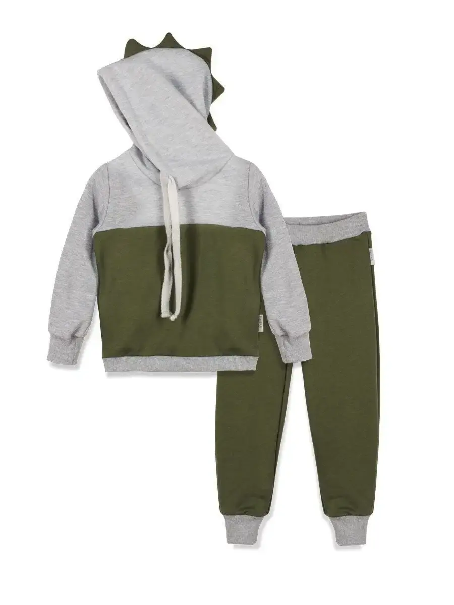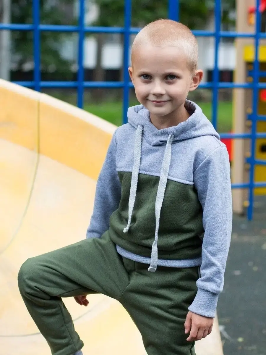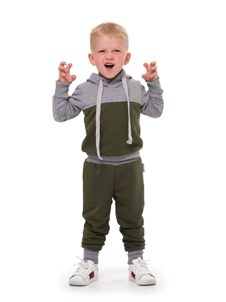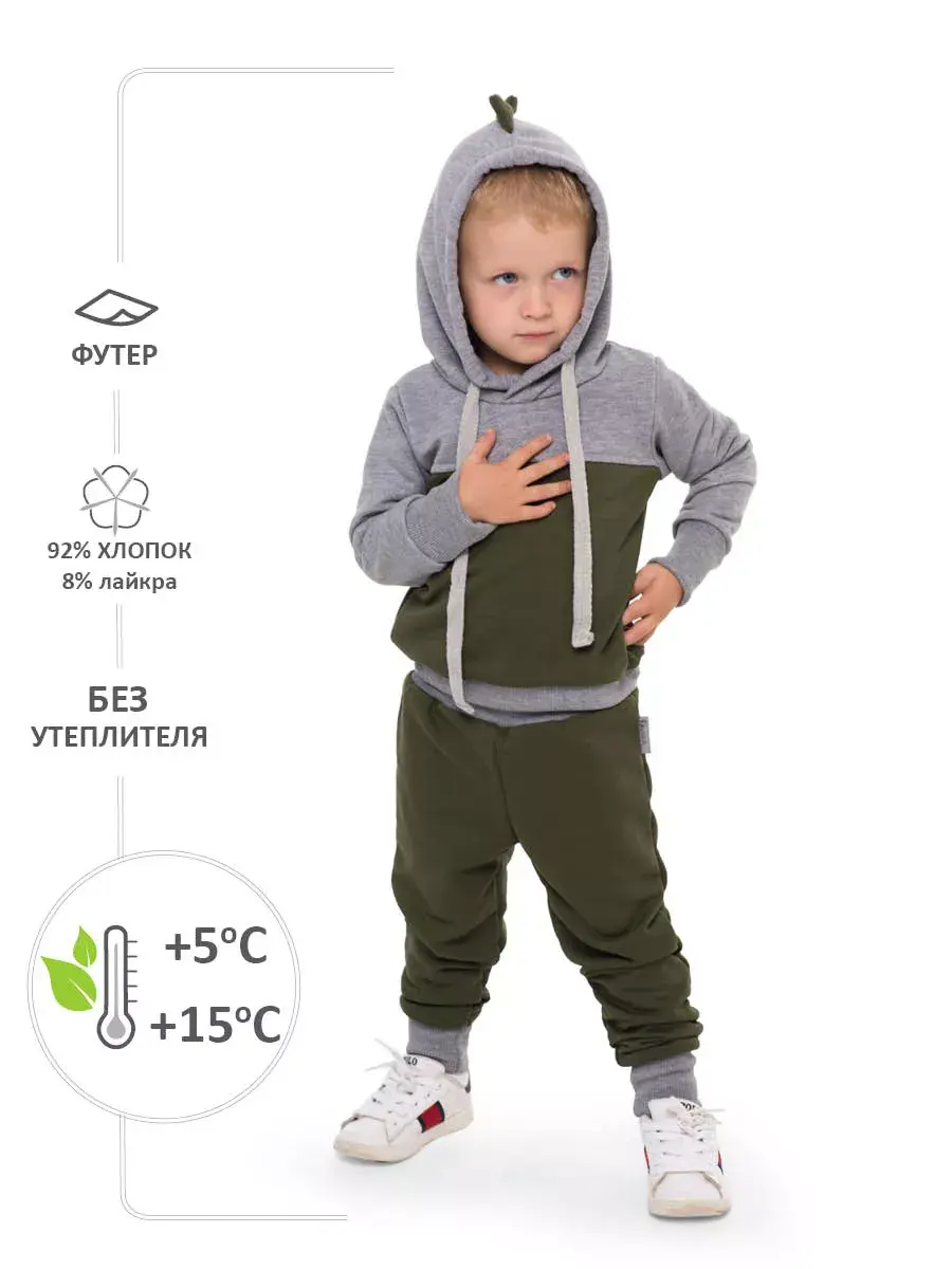Комплект трикотажный детский для мальчиков из плотного футера: толстовка с капюшоном + штанишки на резинке.