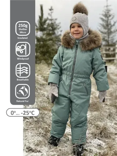 Верх - мембрана 3000/3000, подкладка - флис/таффета, утеплитель нового поколения shelter 250гр в куртке и 150гр в полукомбинезоне, рекомендуемая температура носки от -5 до -25С. Температурный режим является ориентировочным, необходимо учитывать сопутствующие факторы, такие как ветер, влажность воздуха, наличие промежуточного слоя, характеристик обуви и индивидуальных особенностей ребёнка. Отображение оттенка может отличаться на различных устройствах.