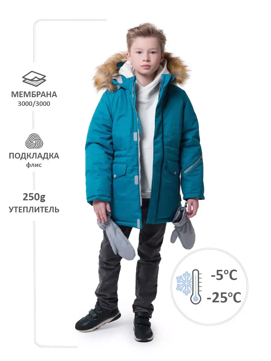 Куртка зимняя мембрана - это идеальный выбор для мальчика в холодное время года. Она отлично защищает от непогоды и обеспечивает комфортную теплоизоляцию. Куртка выполнена из специального материала с мембраной 3000/3000, которая обладает высокой водонепроницаемостью и ветрозащитой. Это гарантирует, что вашему сыну будет не только тепло, но и сухо во время прогулок по заснеженным улицам. В зимней куртке используется утеплитель нового поколения shelter 250гр, рекомендуемая температура носки до -25С. Куртка имеет стильный дизайн и отлично подходит для активного образа жизни мальчика. Она оснащена множеством удобных карманов, в которых можно разместить необходимые мелочи. Кроме того, на куртке есть капюшон с регулировкой объема и съемным мехом, который защищает голову от холодного ветра и снега. Особенностями этой куртки является подкладка из флиса, которая создает дополнительный комфорт и тепло. Внутри куртки ваш мальчик будет чувствовать себя комфортно и уютно. Куртка обладает отличной посадкой , что обеспечивает идеальную посадку и комфорт при движении. Зимняя куртка мембрана для мальчика - это надежная и стильная защита от холода и сырости. Она подходит для любых активностей на открытом воздухе и гарантирует защиту от непогоды. В этой куртке вашему мальчику будет тепло и уютно в любую погоду.