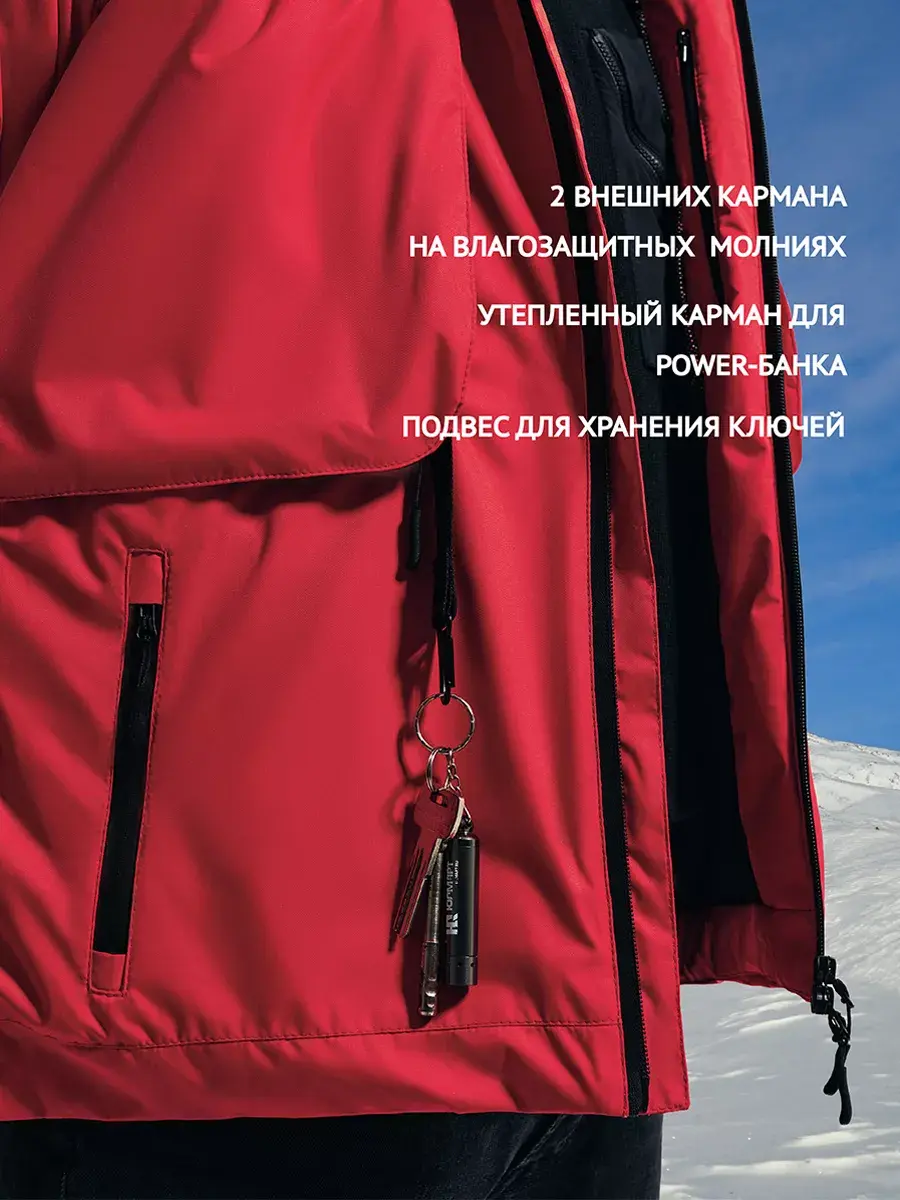 Куртка мужская спортивная утепленная с обогревом и системой сохранения тепла. Кнопка регулирования обогрева с режимами +30, +40, +50гр. Подойдет на расширенный температурный диапазон как зимняя куртка, так и на демисезон. Система климат-контроля - комбинированная подкладка со специальной вставкой для теплообмена, термометр для контроля микроклимата внутри куртки. Центральная застежка на влагозащитную молнию с двумя замками (можно расстегнуть сверху и снизу), два кармана спереди на влагозащитных молниях, утепленный карман для power-банка для сохранения заряда, 3 внутренних кармана, карман с подвесом для ключей. Объемный капюшон с укрепленным козырьком, регулировка объема по капюшону и по талии. Высокий воротник, внутренняя ветрозащитная планка с защитой подбородка. Анатомическая форма рукава, регулировка патами на липучке, манжеты с прорезью для пальца. Отлично подойдет для активных видов спорта - снегоход, сноуборд, горные лыжи, сноукайтинг, квадроцикл, а также для городских прогулок в переменчивую погоду.