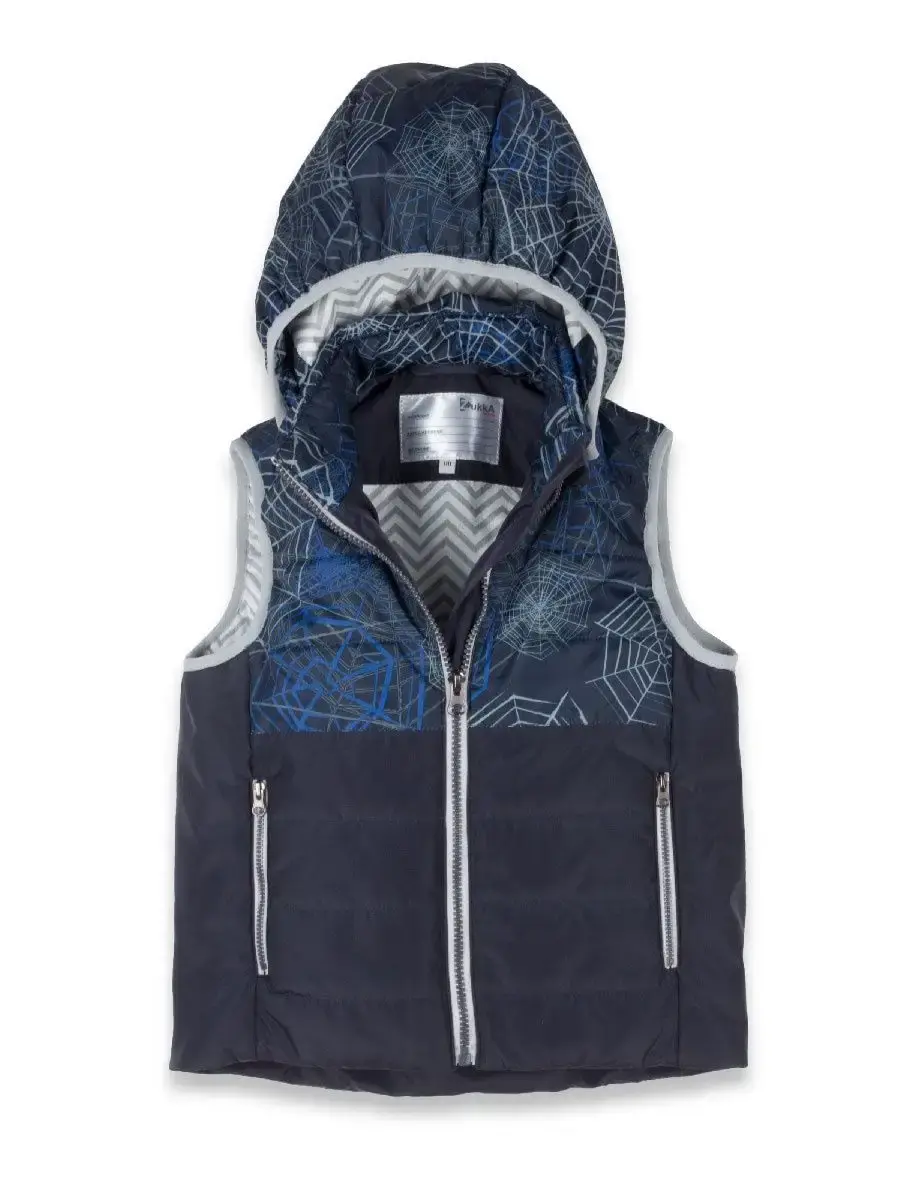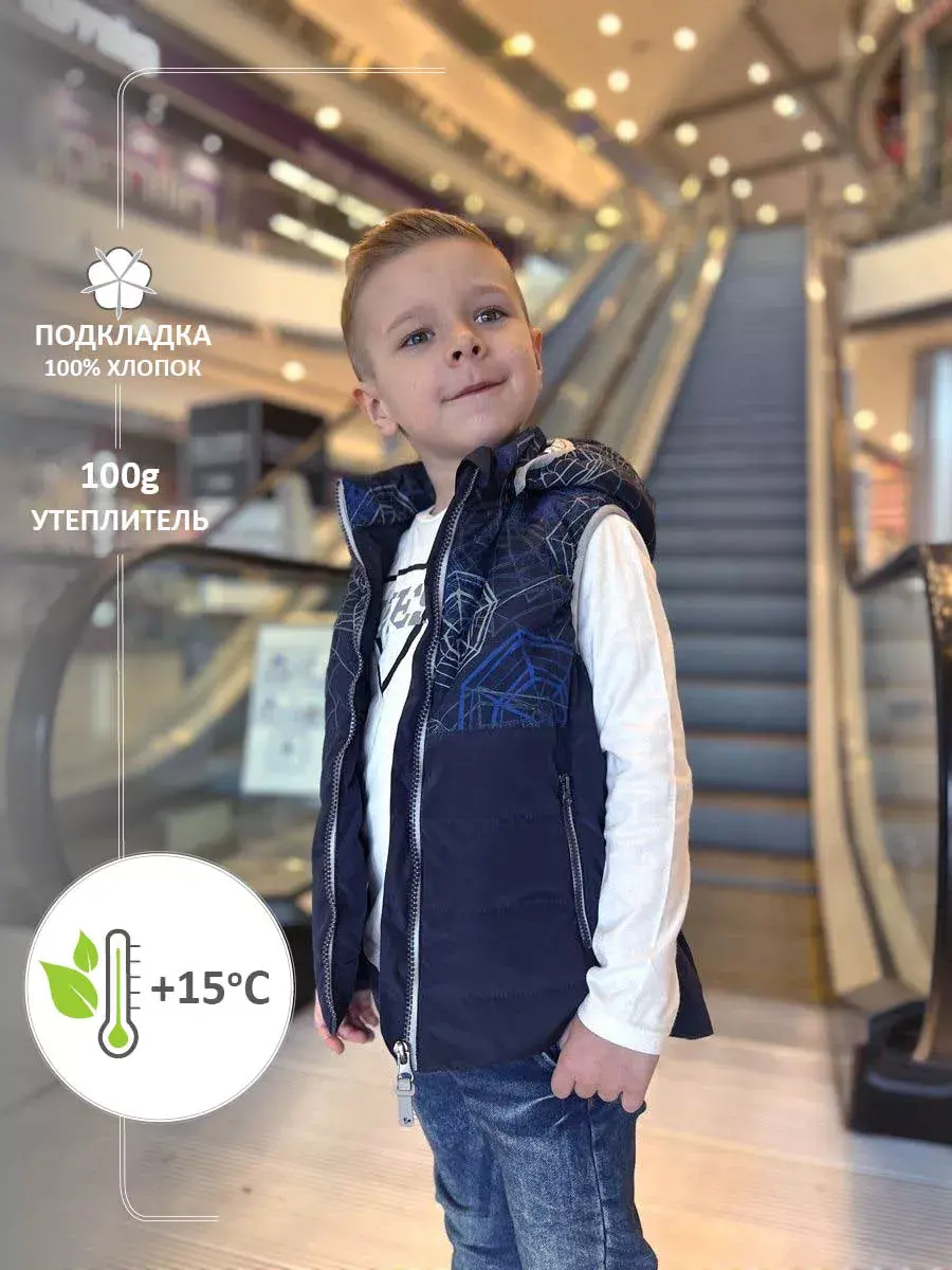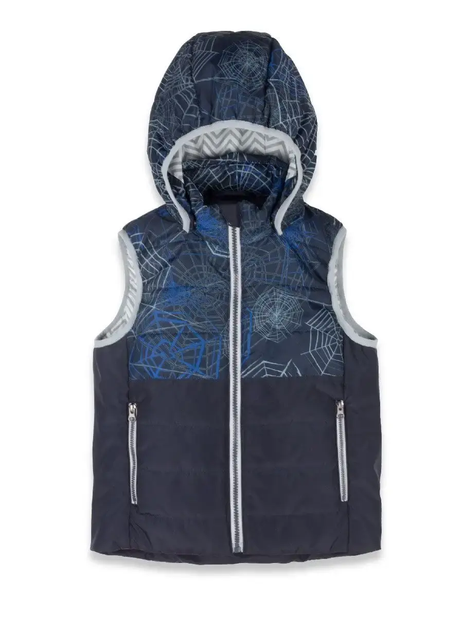 Застежка-молния с внутренней ветрозащитной планкой и защитой подбородка от защемления. Капюшон съемный на липучках и 2х фиксирующих кнопках. Спереди два кармана на молнии в рельефных швах, внутренний накладной карман. Отделка эластичной окантовочной тесьмой (капюшон), имиджевые светоотражающие бирки. Специальная бирка для имени не позволит жилетке потеряться в детском саду, школе или спортивной секции.