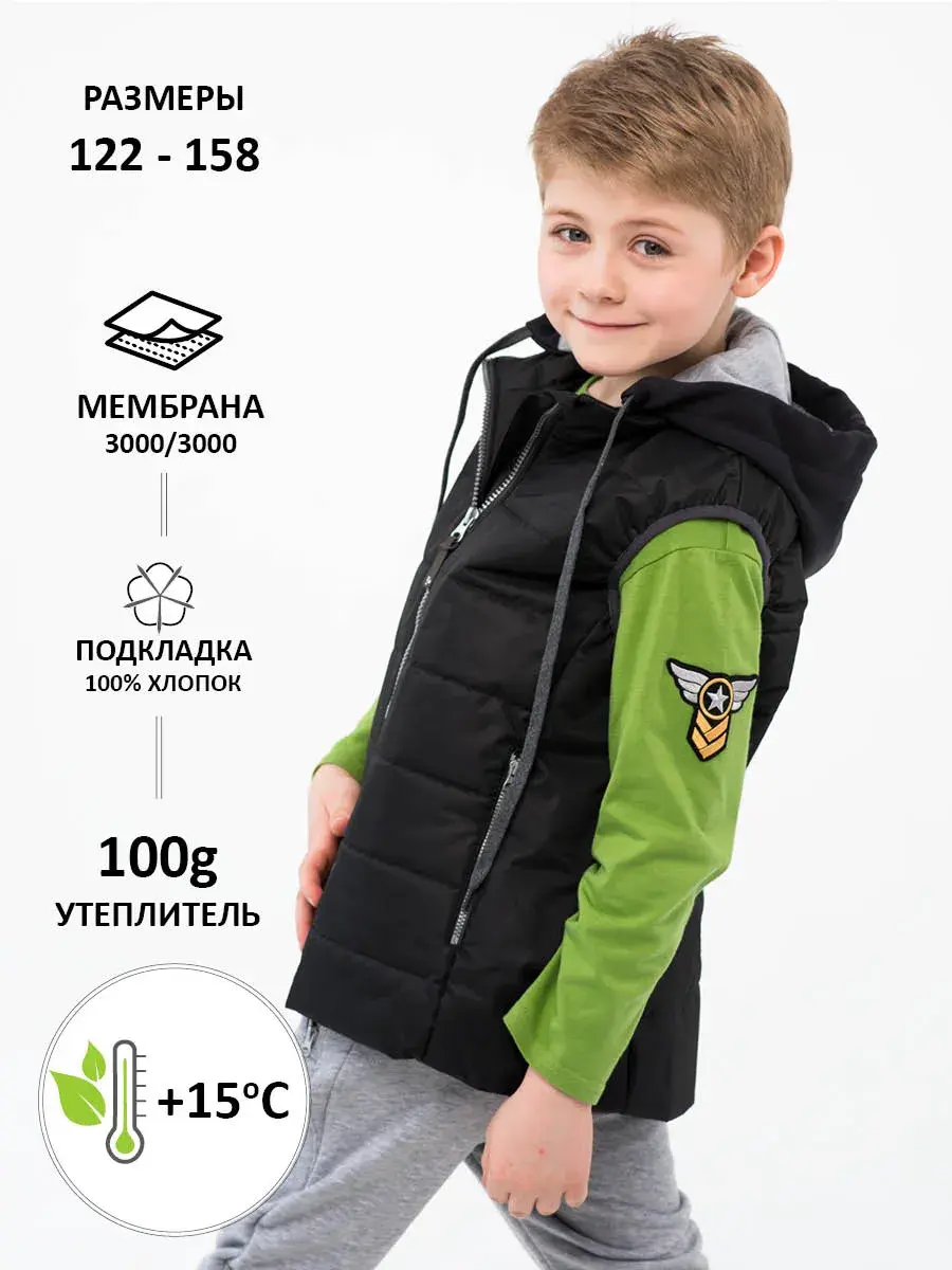 Жилет утепленный стеганый мембрана - идеальный выбор для мальчика и девочки, стильный и красивый вариант одежды. Изделие выполнено из современных материалов: материал верха мембрана с пропиткой 3000 на 3000. Утеплитель shelter 100 гр и подкладка из 100% хлопка. Материал мембрана обладает водоотталкивающими и ветронепродуваемыми свойствами. Тонкий и легкий утеплитель шелтер, не придает изделию дутый эффект. Этот товар выполнен в стиле casual, но при он отлично подойдет для занятий спортом и активный игр. Летний модный жилет с капюшоном пригодиться для туризма, отдыха и походов. Это изделие - тренд коллекции осень 2024. В нем ваш ребенок будет выглядеть актуально и стильно. Спортивная безрукавка имеет множество размеров, и подойдет даже для подростков. Элегантный унисекс жилет c капюшоном выполнен с внутренней ветрозащитной планкой, отделкой эластичной окантовочной тесьмой, внутренним накладным карманом и имиджевыми светоотражающими бирками. Застежка молния. Под осеннюю жилетку можно носить с толстовку, худи или кофтой, в этом случае он может заменить верхнюю одежду. Эффекта оверсайз можно достигнуть, если купить изделие на 1-2 размера больше. Эта демисезонная вещь и отлично подойдет для катания на коньках в зимний период. Болоньевая утепленная теплая безрукавка - это куртка без рукавов, которая подойдет для активных тренировок и сорта. Это изделие для детей не заменимая вещь для долгих прогулок, она не сковывает движения и защищает вашего малыша от непогоды. Незаменимая одежда для весны, лета и осени.